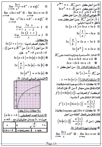 ملخص مفصل عن الدوال اللوغاريتمية و الأسية لطلاب البكالوريا الرياضي المبرمج