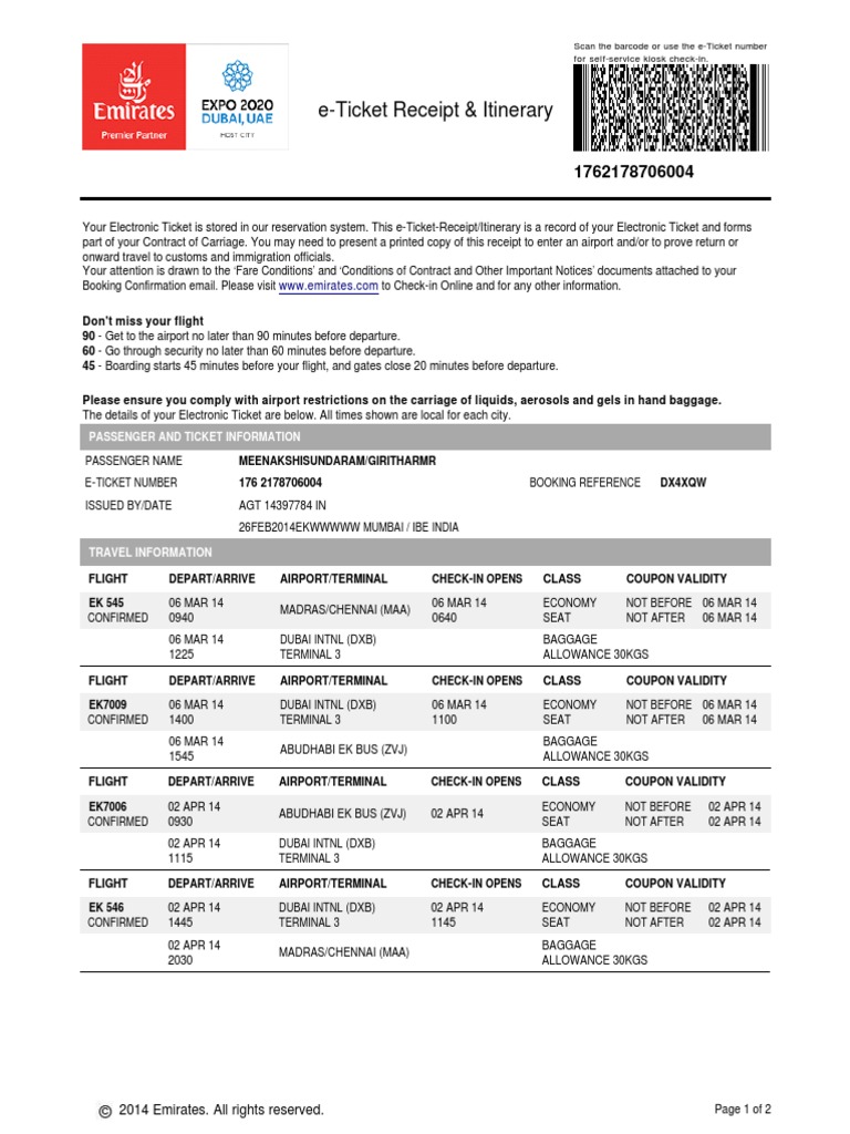 Sample E Ticket Itenerary Emiritravel
